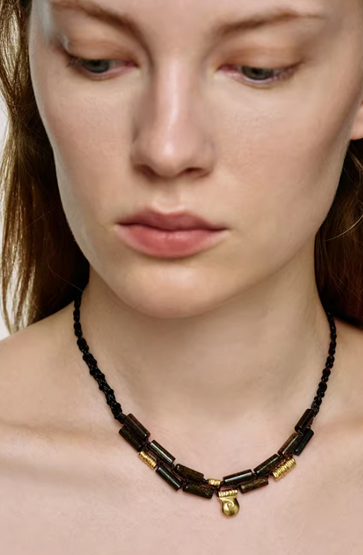 Knot designs have been symbolic across civilizations, representing unity and continuity. This necklace modernizes that symbolism with a fusion of natural stones and antique copper, giving it a timeless appeal.