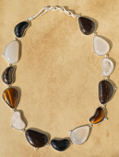 Inspired by mystical landscapes and gemstone lore, the design combines multiple stones in harmonious patterns, evoking natural wonder and spiritual elegance.